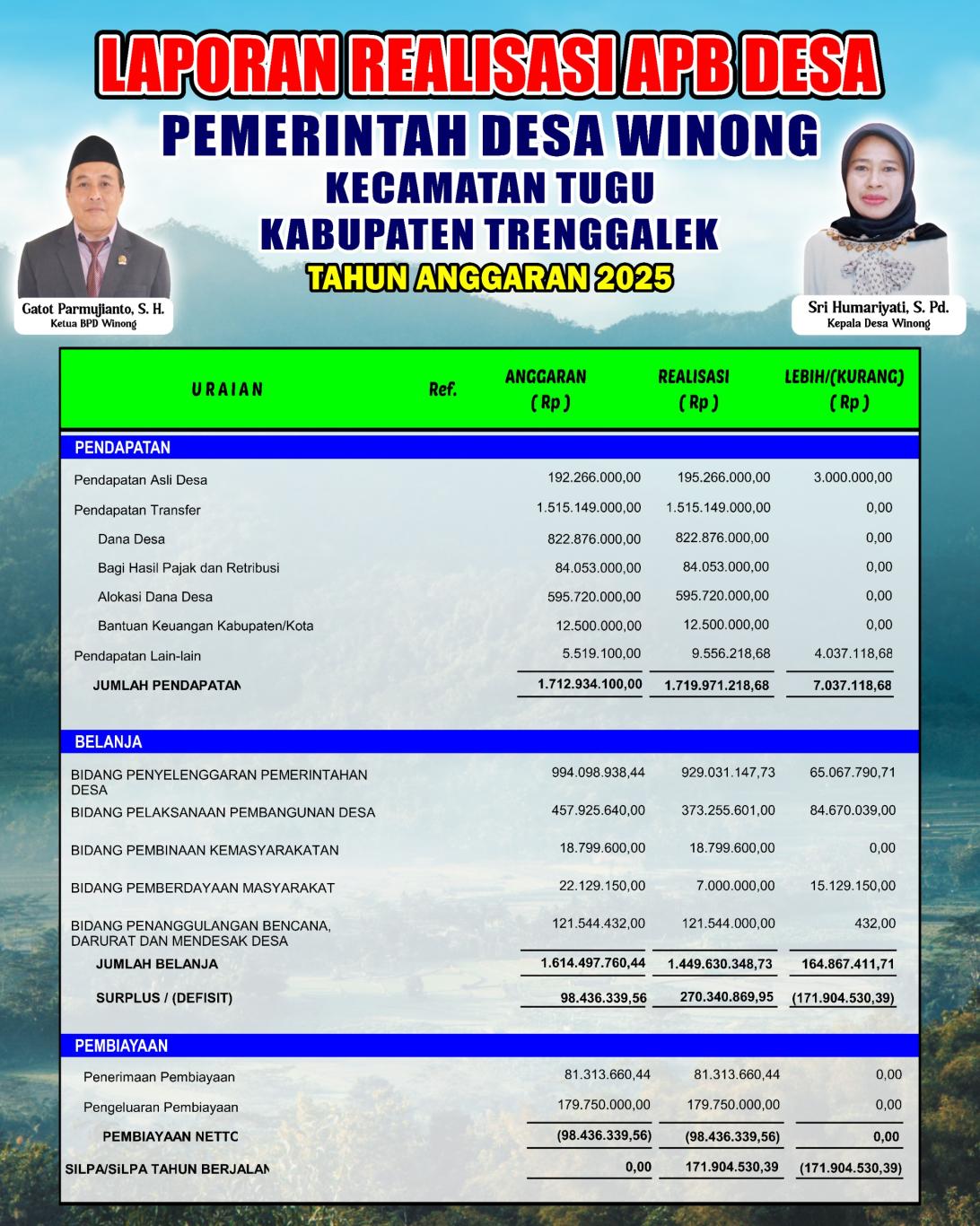 - LAPORAN REALISASI APB DESA PEMERINTAH DESA WINONG TAHUN ANGGARAN 2025